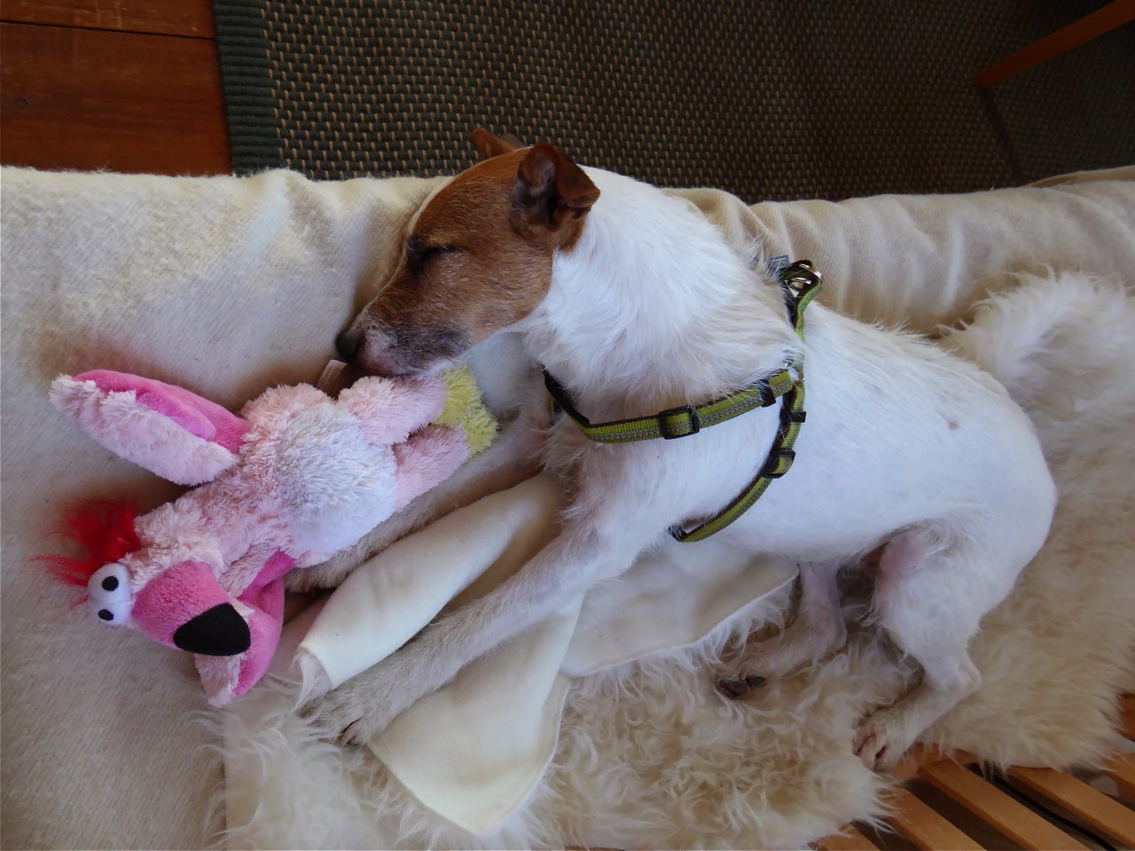 Nu sover han utmattad av all frisk luft och av att vara vaken så många timmar. Det är inte lätt att slappna av utomhus när man har sånt bra luktsinne.